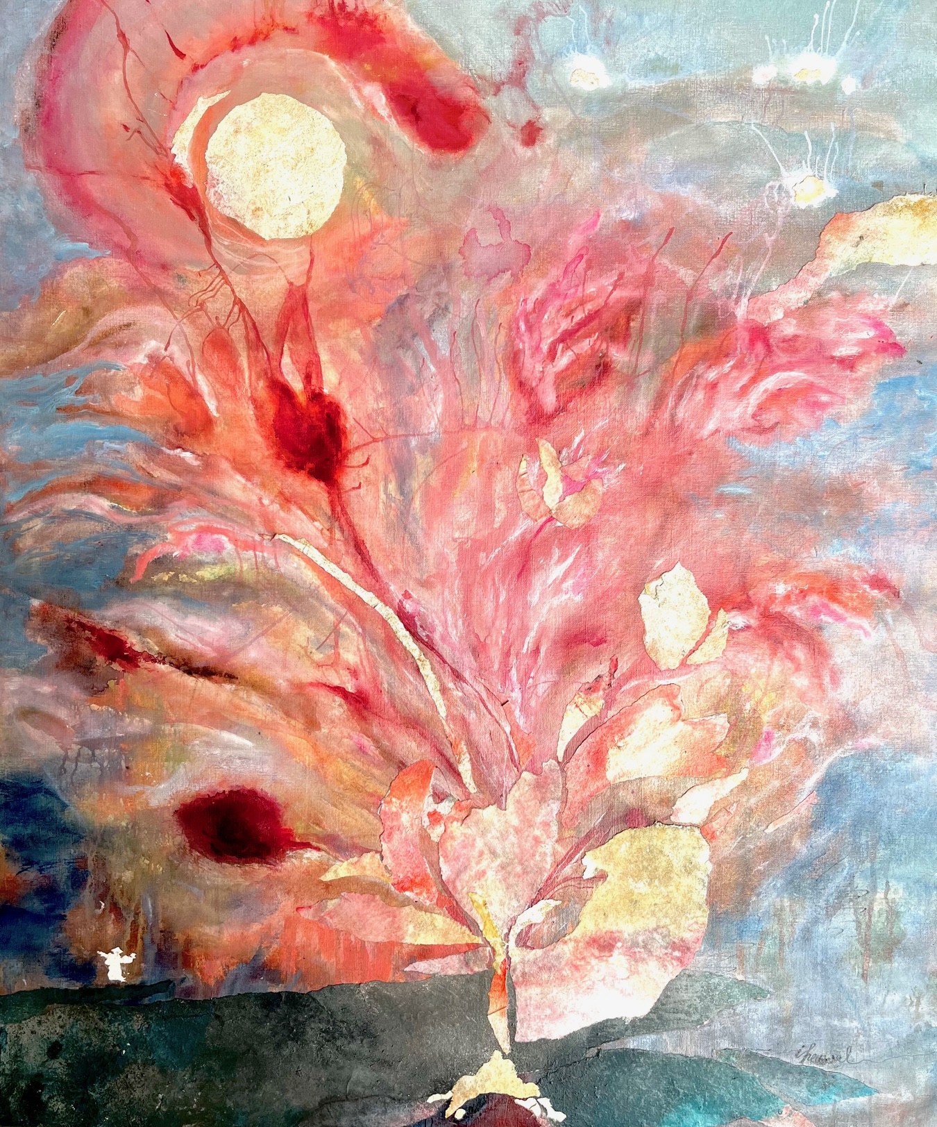 Materiaal: Mixed media op doek, paneel media papier