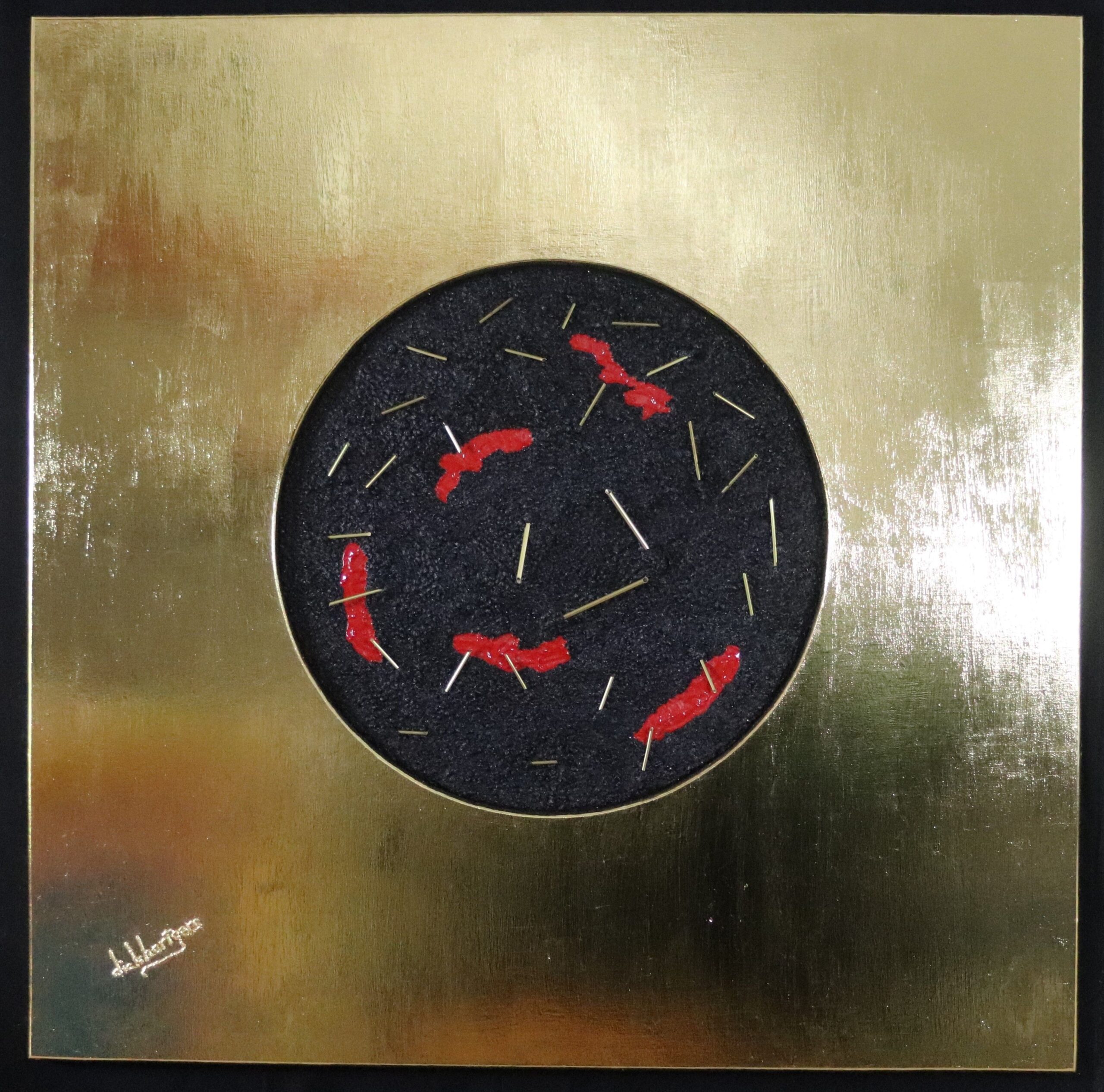 Materiaal Bladgoud. Acryl en messing op MDF.